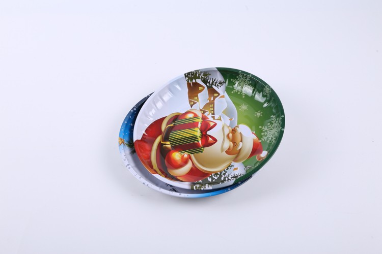 Christmas season food serving tray Metal round tin tray