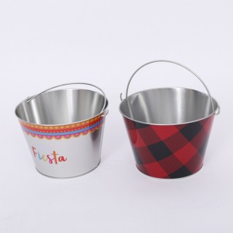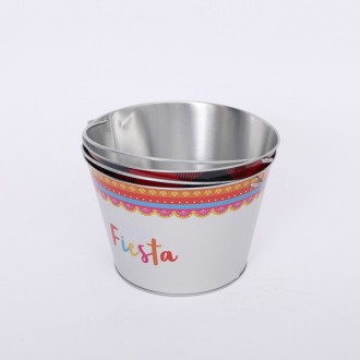 Popcorn metal round tin bucket metal 130 oz tin bucket